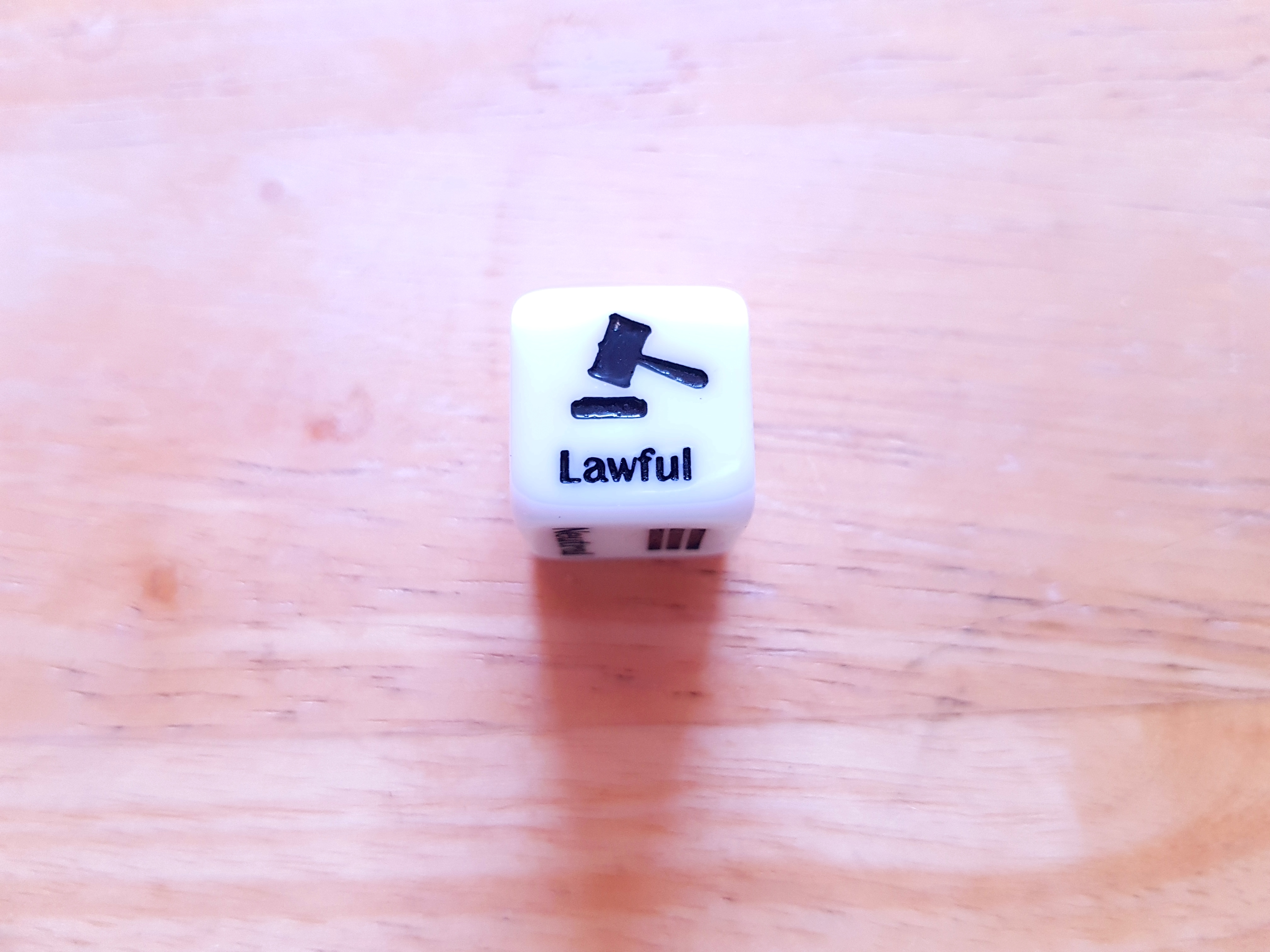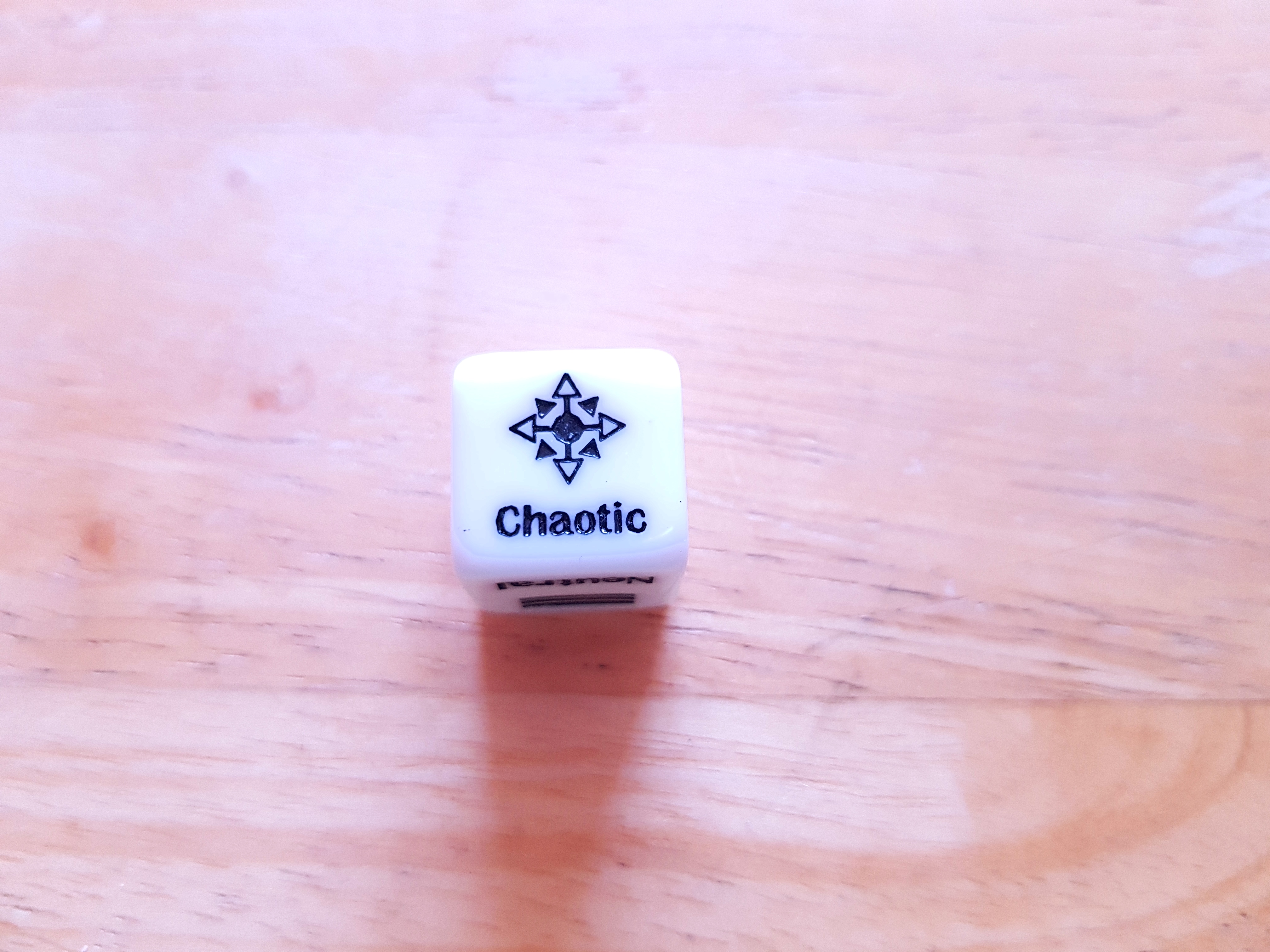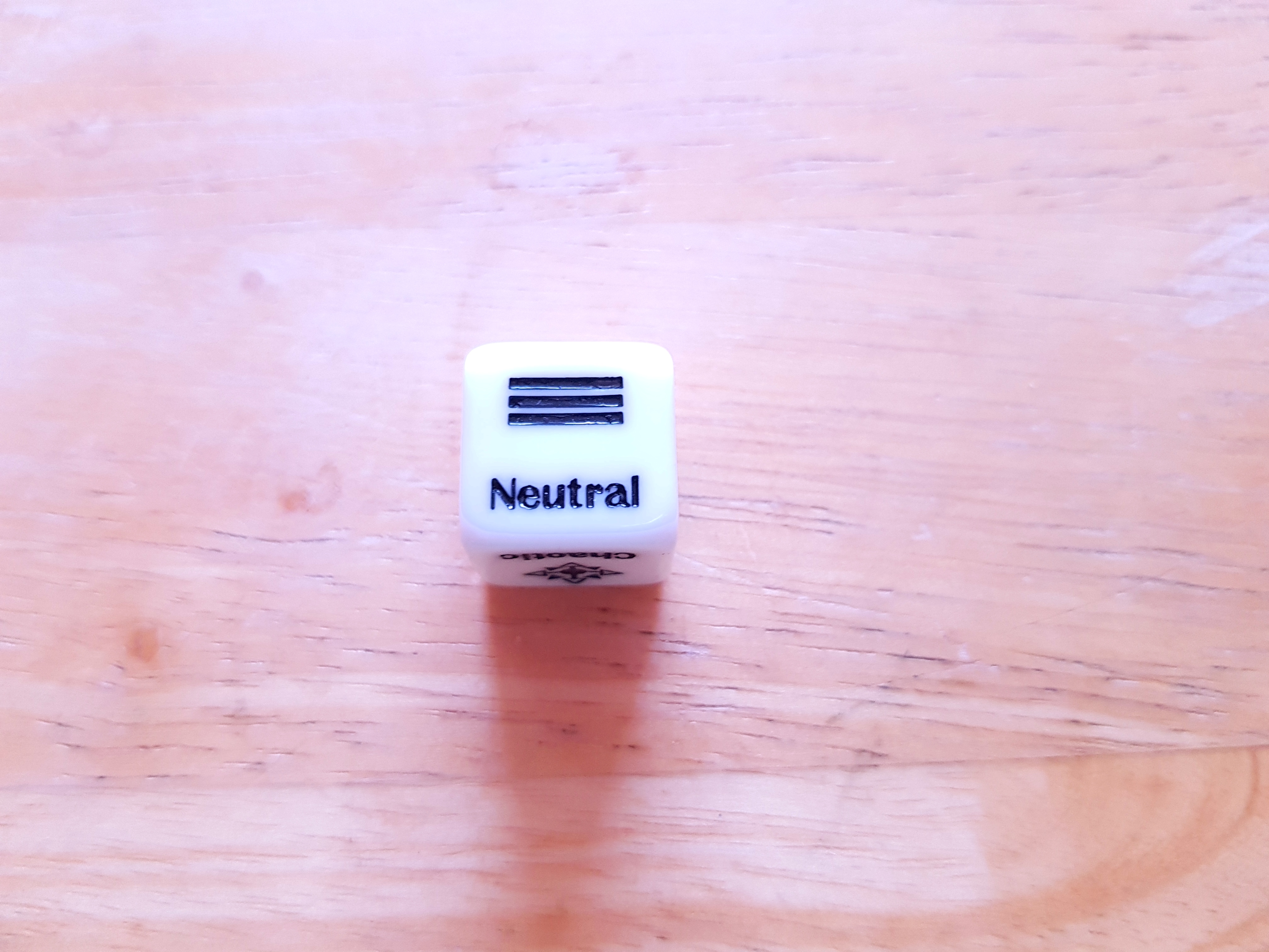 The Alignment Dice have x2 Four-sided dice that has Neutral, Lawful, Good, Evil and Chaotic spread evenly on each side.